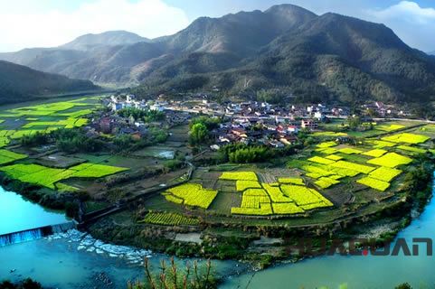 碧水丹山是南朝文學家江淹(夢筆生花和江郎才盡兩個成語就源于江淹)對福建省浦城縣觀前村附近的九石山秀麗風光的評價。浦城是一個美麗